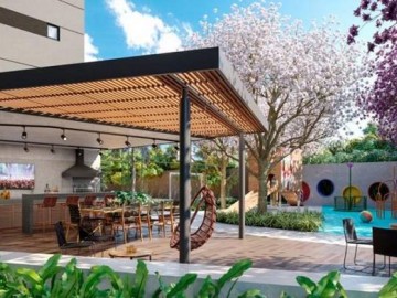 Possui área de fitness, espaço gourmet, área verde de jardim, parquinho com diferentes brinquedos, salão de festas.